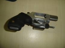 Com os freqüentadores os policiais militares não encontraram armas, mas ao verificar no interior de uma sala anexa ao bar, usada para práticas de jogos de baralho, foi encontrado sobre uma caixa de refrigerante, um revólver calibre 38 SPECIAL, marca taurus, niquelado, cano de 2”, cabo de borracha de nº 62695, sem nenhuma munição.
